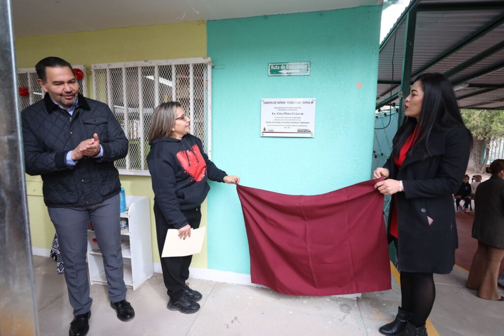 Por su parte, la encargada del preescolar, Dulce Labrada Barrón, dijo al Presidente Pérez Cuéllar que su compromiso con la educación de la niñez juarense es admirable; «las instalaciones que ahora podemos disfrutar transforma la vida de los estudiantes, docentes y padres de familia».
