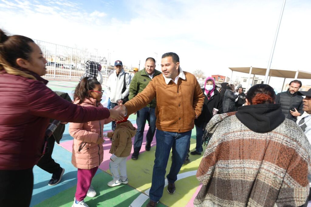 CD. JUAREZ, CHIH.- El Presidente Municipal, Cruz Pérez Cuéllar, visitó el suroriente de la ciudad para llevar a cabo la entrega de las obras de rehabilitación de los parques comunitarios Tutuaca y Desierto de Gobi, los que benefician directamente a más de 16 mil 400 juarenses.