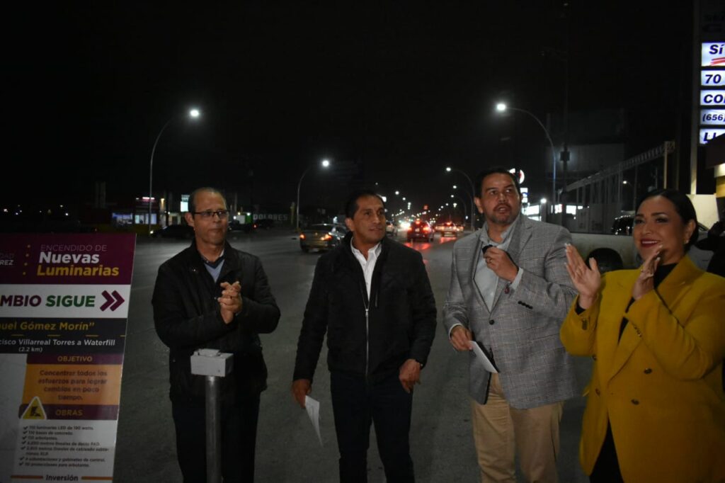 “Muy contentos con los trabajos de iluminación, son más de cuatro kilómetros de la Gómez Morin con alumbrado público, ya habíamos prendido el cinco de diciembre de Paseo de la Victoria a Francisco Villarreal Torres y ahora de Francisco Villarreal Torres a Waterfill, encendiendo un total de 234 luminarias con una inversión final de $27,812 ,994.54”, comentó el edil.