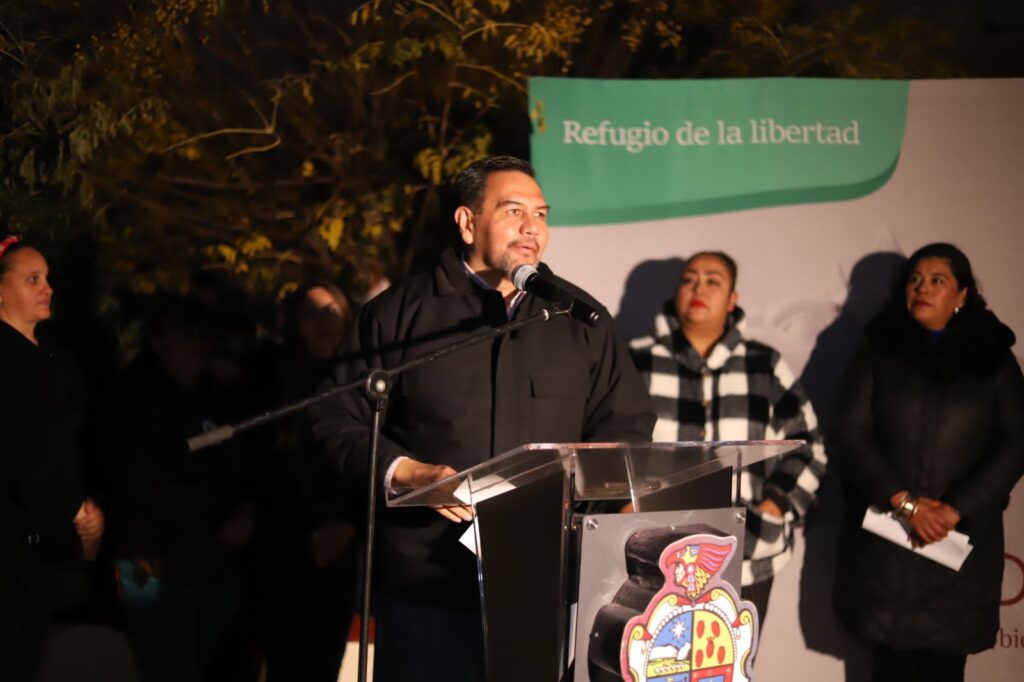 Bueno Quiroz; Ismael Rueda Fernández, coordinador de Infraestructura Educativa del Municipio; Lucero Carrasco, presidenta de la Sociedad de Padres de Familia y Alejandra Núñez, representante de la Asociación Civil Más x Juárez.