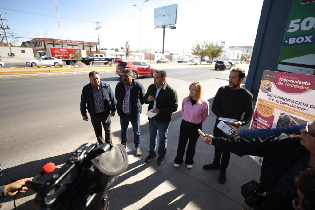 CD. JUAREZ, CHIH.- El Gobierno Municipal continúa con los trabajos de rehabilitación en la avenida Tecnológico, una de las vialidades más importantes de la ciudad, donde este día el alcalde hizo la entrega oficial de siete tramos atendidos.