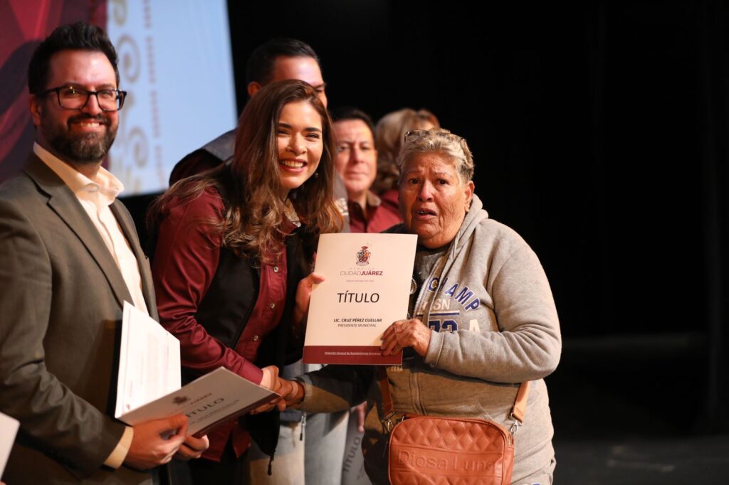 CD. JUAREZ, CHIH.- Fueron 479 títulos de propiedad, los que entregó esta mañana el Gobierno Municipal dentro de una ceremonia que tuvo lugar en las instalaciones del Teatro Gracia Pasquel de la Universidad Autónoma de Ciudad Juárez.