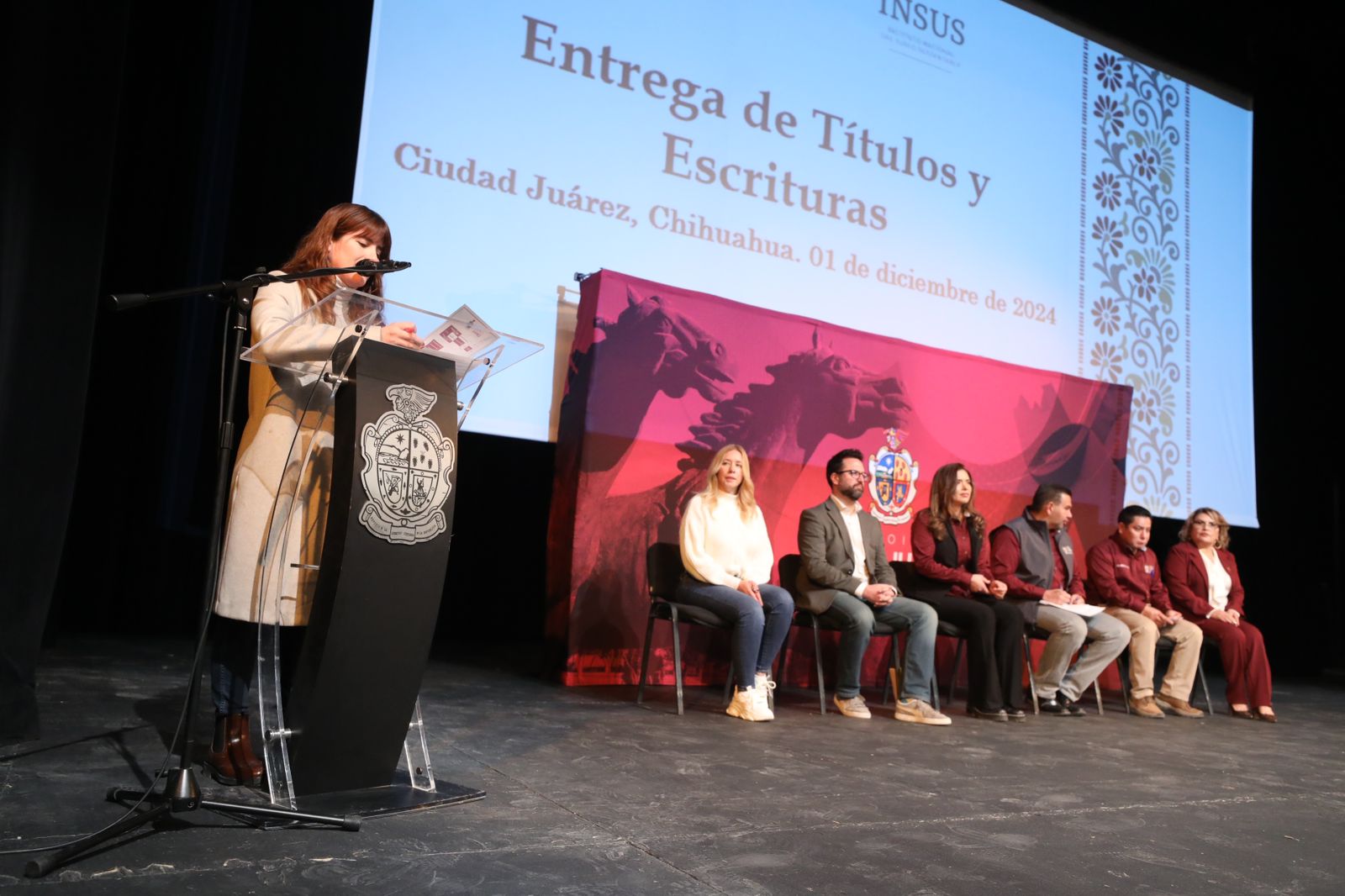 CD. JUAREZ, CHIH.- Fueron 479 títulos de propiedad, los que entregó esta mañana el Gobierno Municipal dentro de una ceremonia que tuvo lugar en las instalaciones del Teatro Gracia Pasquel de la Universidad Autónoma de Ciudad Juárez.
