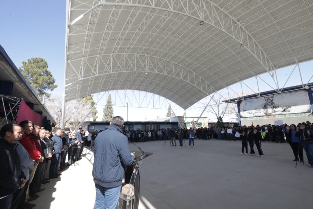 CD. JUAREZ, CHIH.- Avanzando en el tema de mejora de infraestructura educativa, este día el Presidente Municipal, Cruz Pérez Cuéllar, hizo la entrega oficial de un nuevo domo construido en la Escuela Secundaria Técnica 33, ubicada en el fraccionamiento Pradera Dorada.