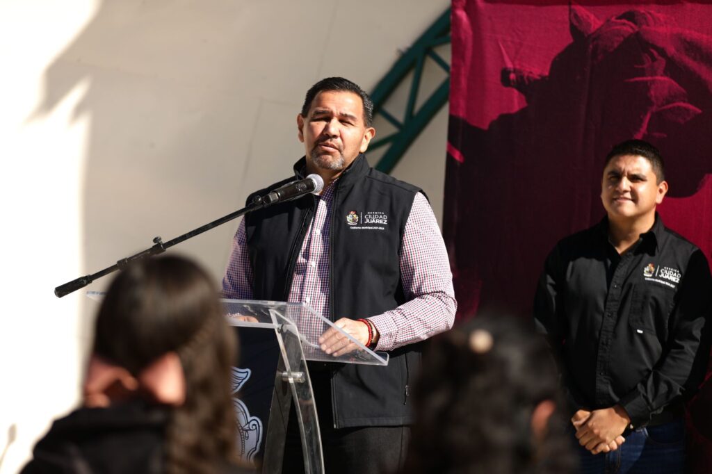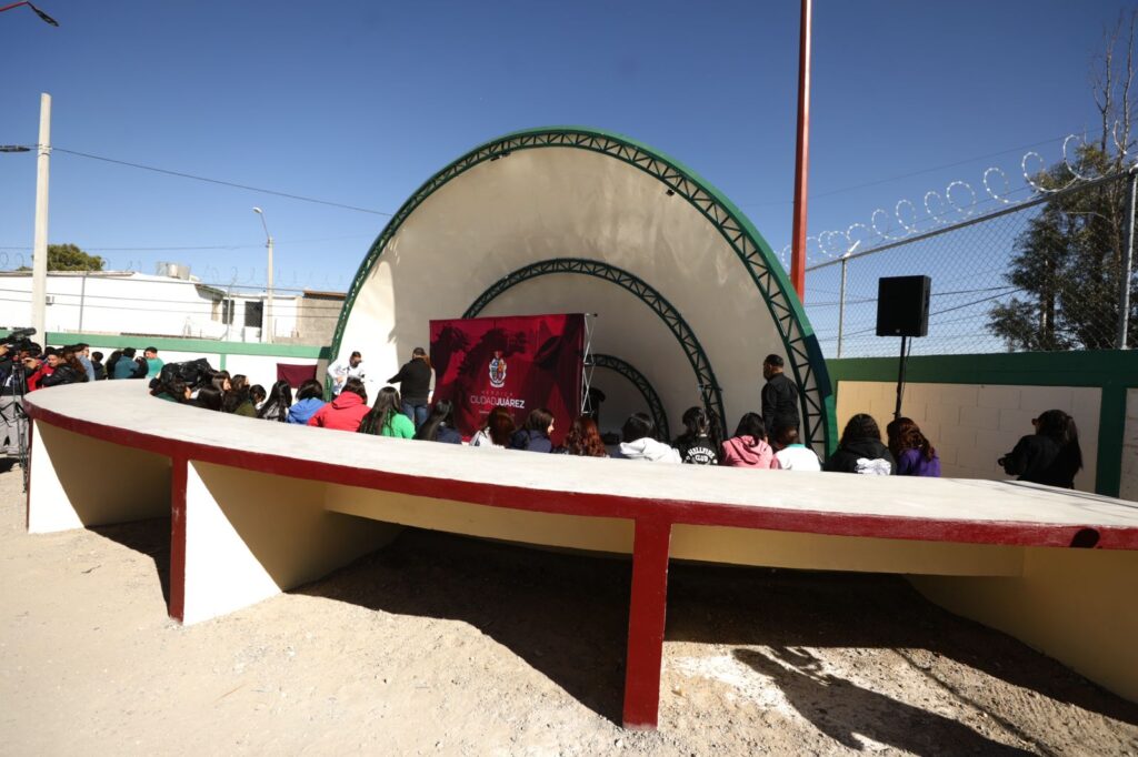 CD. JUAREZ, CHIH.- El Presidente Municipal, Cruz Pérez Cuéllar, entregó esta mañana las obras de rehabilitación del Colegio de Bachilleres 7, entre las que destaca la construcción de un teatro acústico al aire libre.