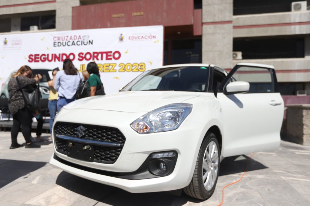 CD. JUAREZ, CHIH.- El Presidente Municipal, Cruz Pérez Cuéllar, entregó simbólicamente 250 mil pesos a las docentes que representaron a las cuatro escuelas ganadoras del programa “Cruzada por la Educación”, recurso que se obtuvo de la rifa de un automóvil Suzuki, modelo 2023 que se entregó este día a la ganadora, Catalina Verónica Jurado Mijares.