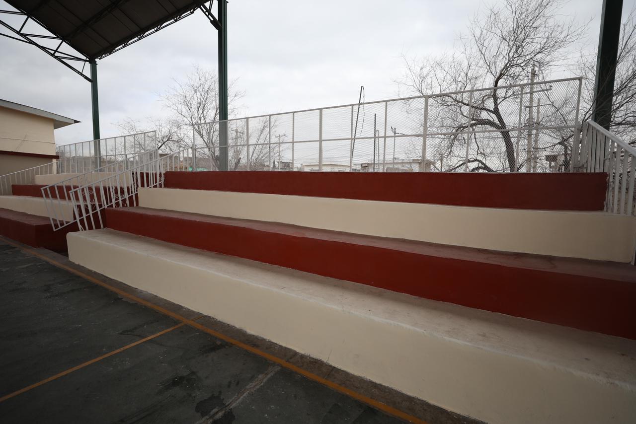 Como parte de las mejoras se pintó todo el plantel, rampas y cordones de banquetas, se instaló la malla ciclónica, así como siete luminarias Led, se trabajó en la pintura del domo y la rehabilitación del sistema eléctrico.