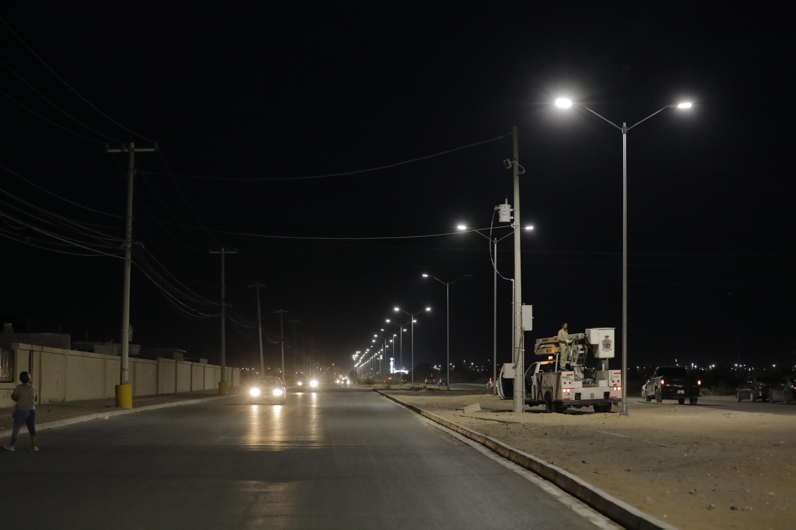 El alcalde explicó que la red de alumbrado de un tramo de 1.6 kilómetros que comprende de la calle Narihua a la avenida Santiago Troncoso y se realiza con el presupuesto de Transferencia de Potencial Urbano, de Toreos Residencial, por parte de Enalte Desarrollos.