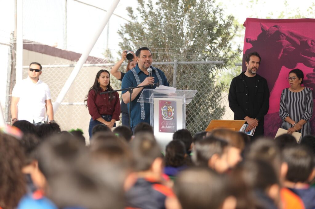 CD. JUAREZ, CHIH.- Este día, el Presidente Municipal, Cruz Pérez Cuéllar, entregó un domo a los alumnos del Jardín de Niños Rosario Castellanos, ubicada en la calle Chinatú.