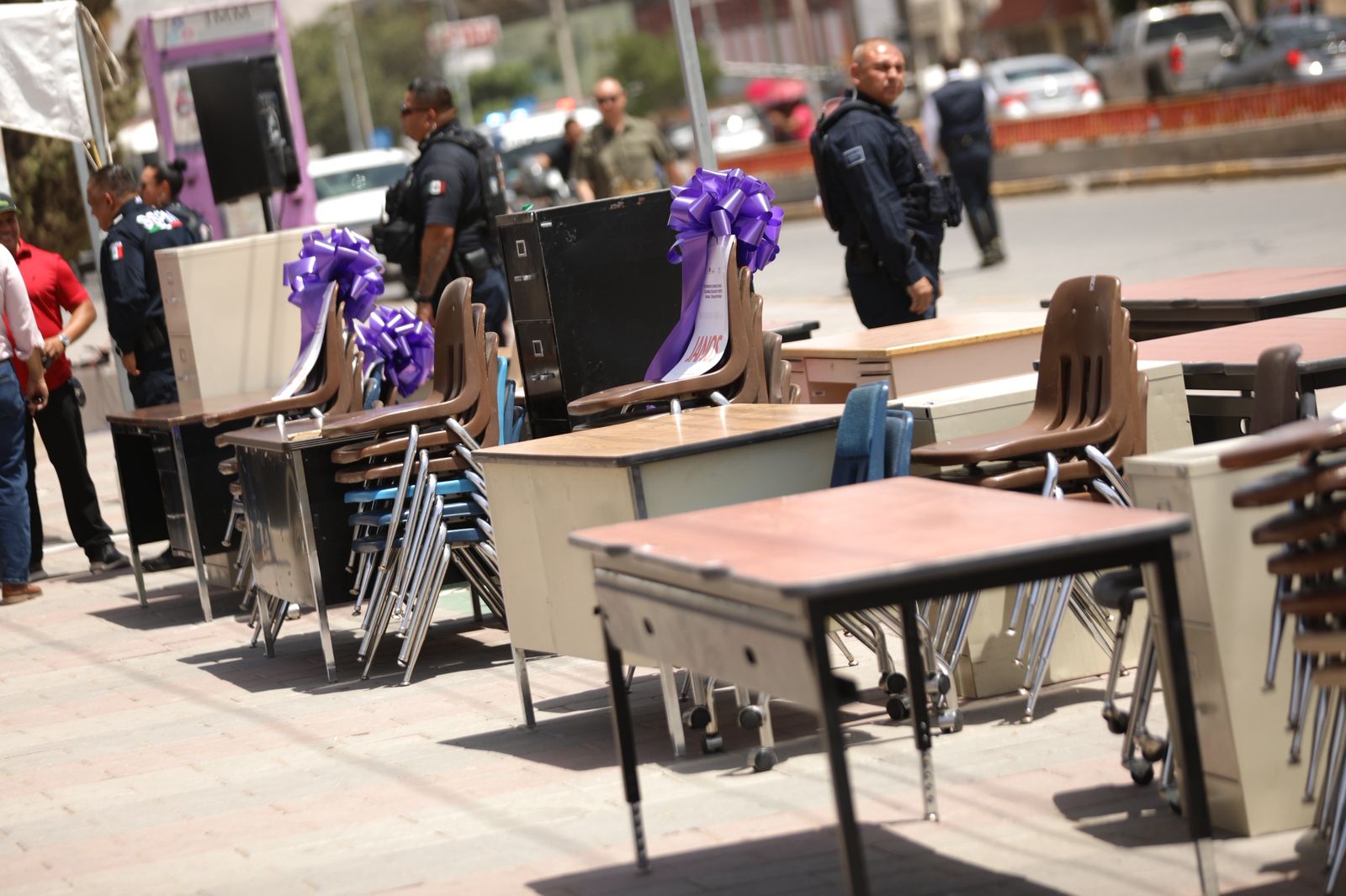 CD. JUAREZ, CHIH.- El Presidente Municipal, Cruz Pérez Cuéllar, encabezó la entrega de mobiliario de oficina destinado a instancias de las mujeres de 11 municipios del estado, entregando poco más de 500 muebles.