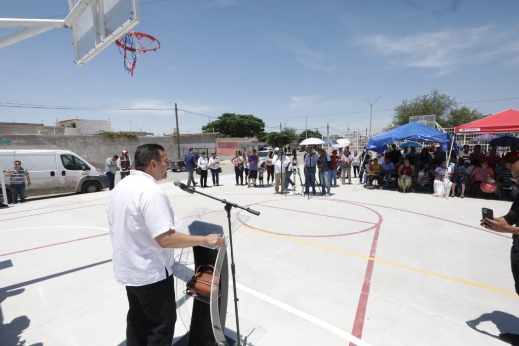 Daniel González, titular de Obras Públicas, comentó que la obra consta de la rehabilitación de mobiliario existente, mantenimiento de arbotantes, pintura en guarniciones, construcción de banquetas fabricación de cancha, suministro de mobiliario, suministro de juegos, suministro de reja en cancha, ejercitadores, área de calistenia y pintura en líneas de cancha bajo una inversión de $2,537,471.17.