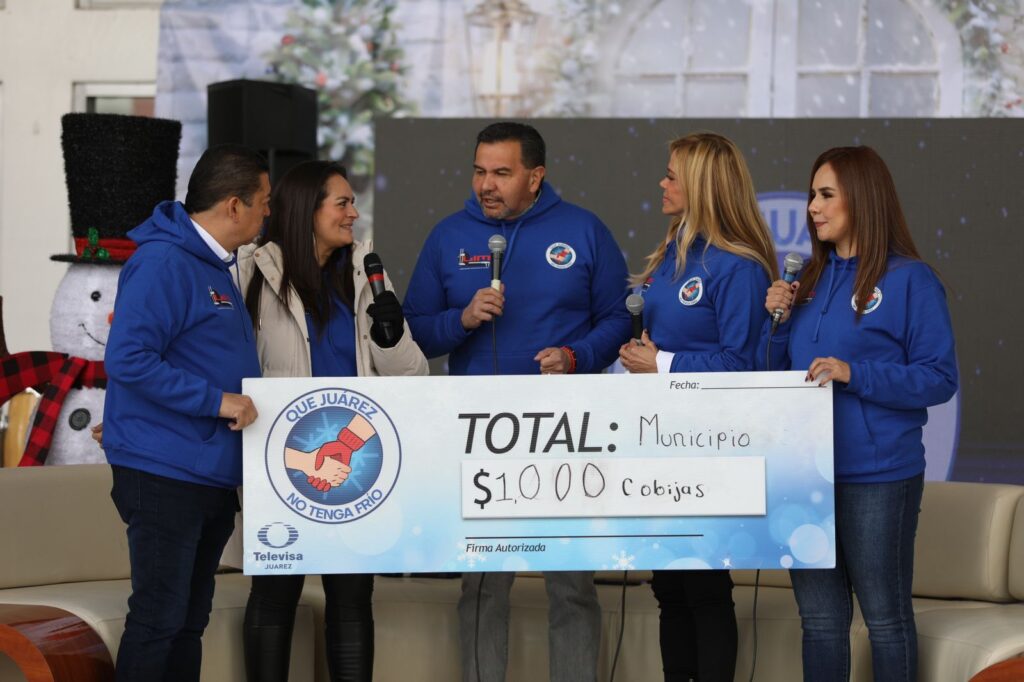 CD. JUAREZ, CHIH.- Como parte de la campaña Que Juárez no tenga frío, llevada a cabo por la empresa Televisa, este día el Gobierno Municipal donó mil cobijas.