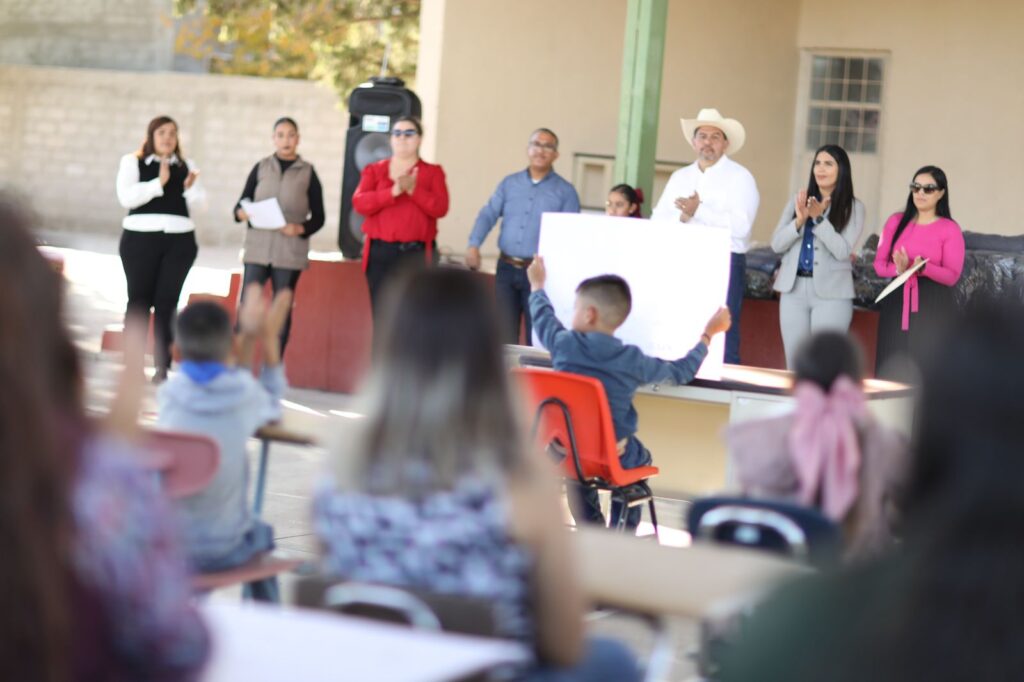 En esta entrega en Villa Coronado, el presidente Pérez Cuéllar, estuvo acompañado del director de Educación del Municipio de Juárez Guillermo Alvídrez, así como del regidor de la comisión de Educación, Jorge Marcial Bueno Quiroz.
