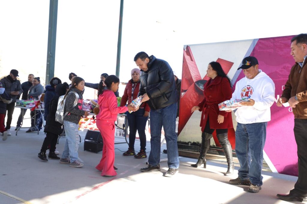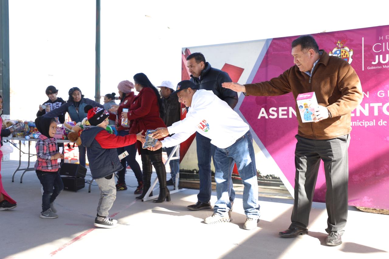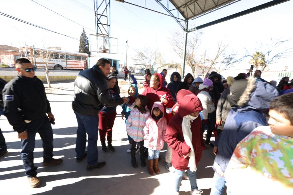 CD. JUAREZ, CHIH.- Esta mañana, el Presidente Municipal, Cruz Pérez Cuéllar, visitó el parque comunitario de la colonia Emiliano Zapata para entregar cientos de obsequios a niños, niñas y jóvenes que habitan en el poniente de la mancha urbana.