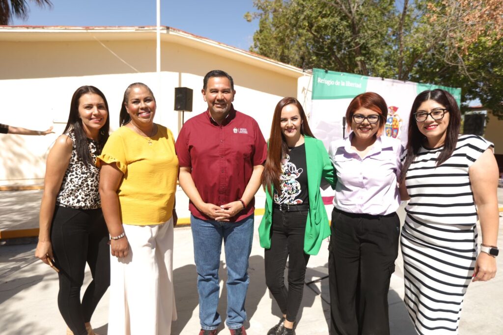 En la entrega estuvieron Ismael Rueda, coordinador de Infraestructura Educativa del municipio; Jorge Marcial Bueno, regidor del ayuntamiento; Guillermo Alvídrez, director de Educación; Arturo Rivera Barreno, director general de Servicios Públicos y Erika García, presidenta de la Sociedad de Padres de Familia.