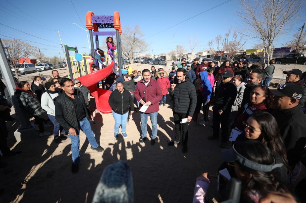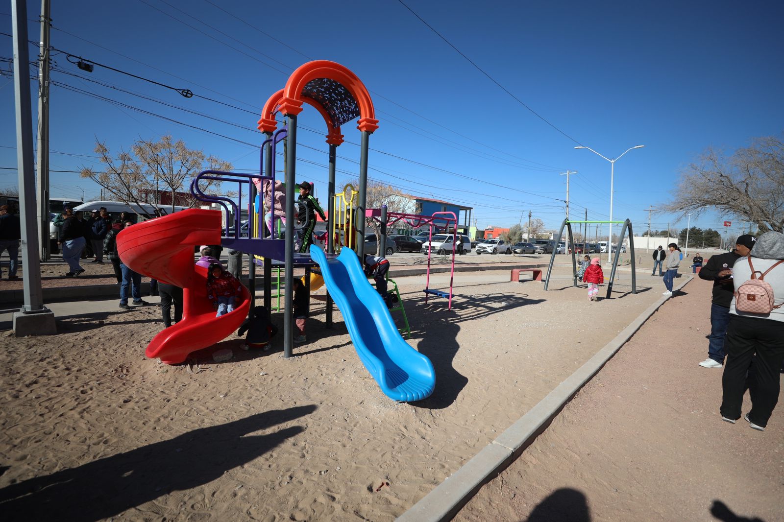 CD. JUAREZ, CHIH.- Como parte de los trabajos de mejoramiento de espacios públicos, esta mañana el Presidente Municipal, Cruz Pérez Cuéllar entregó la rehabilitación del parque Senecú ubicado en las calles Rivera de Senecú y Riveras Piedras Negras en Riberas del Bravo.