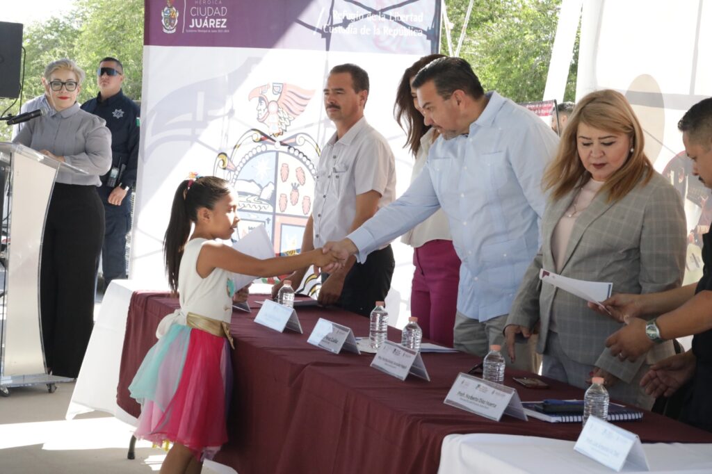 CD. JUAREZ, CHIH.- Es con la educación que se puede dar la cuarta transformación del país, dijo el Presidente Municipal, Cruz Pérez Cuéllar, durante la entrega de Becas de Equidad Social y útiles escolares de la Cruzada por la Educación en la Escuela Primaria Jaime Nunó.