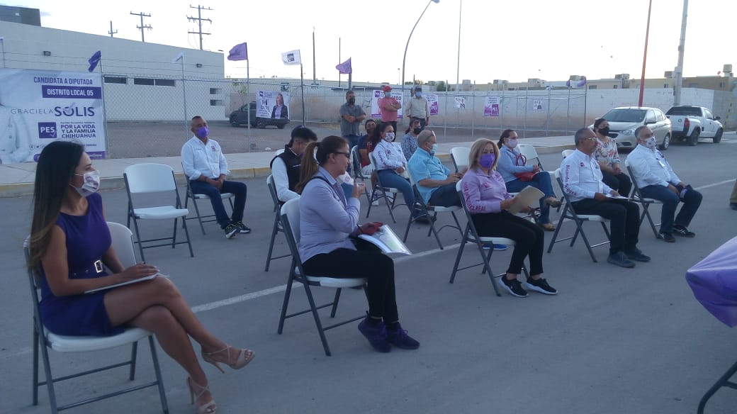 Acompañada de los candidatos a diputados, Ricardo Melgoza y Graciela Solís, además del candidato a síndico, Jorge Puga, la candidata a presidenta municipal, dijo que agradecía la invitación en la cual pudo conocer los proyectos que tienen para el mejoramiento de la ciudad, como la construcción del parque Rochory, que significa codorniz en rarámuri.
