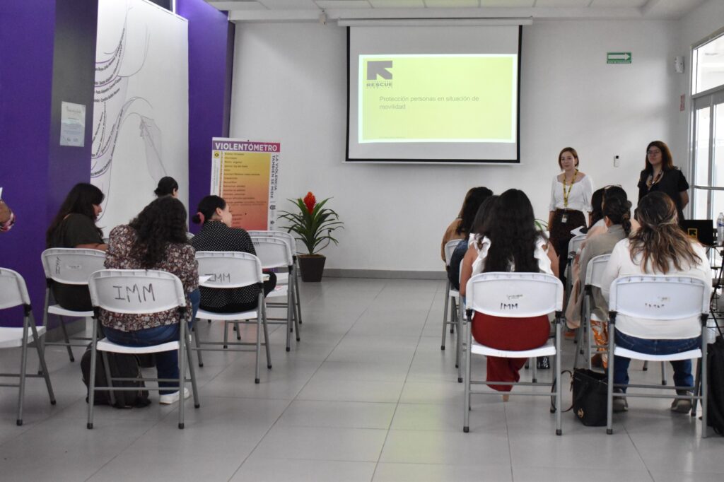 En este sentido, las integrantes del IRC compartieron algunas acciones que llevan a cabo en el campo humanitario direccionadas a esta población, de manera que, si una persona en situación de movilidad acude al IMM a solicitar ayuda, el personal cuente las aptitudes para atender y canalizar de acuerdo a las necesidades específicas de las usuarias.