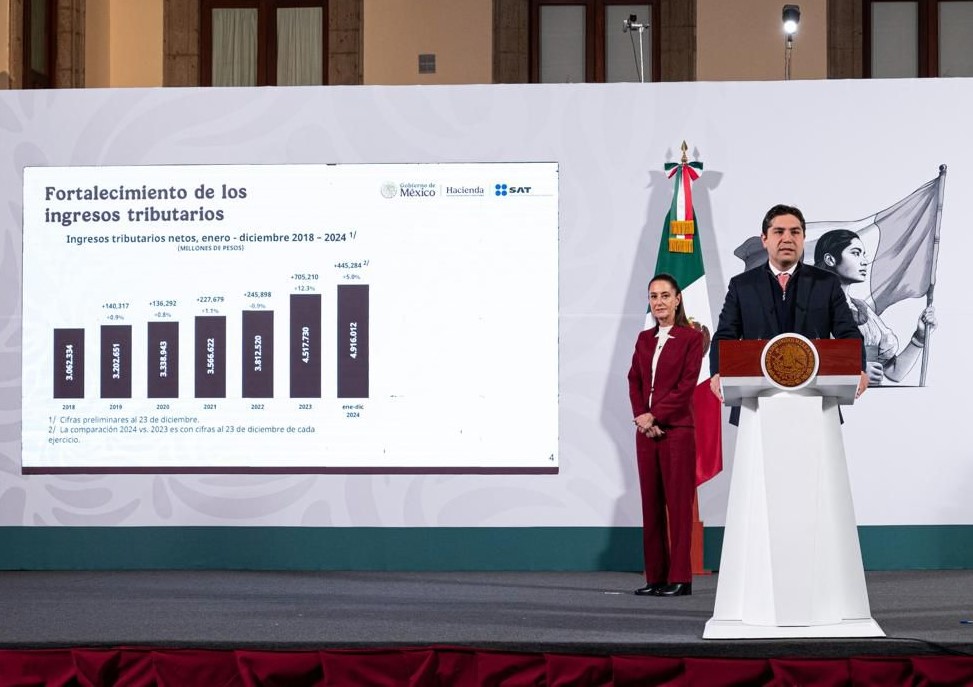 Del 1º de enero al 23 de diciembre de 2024 ascienden a 4.9 billones de pesos, es decir, 445 mil 284 millones de pesos más que el año pasado