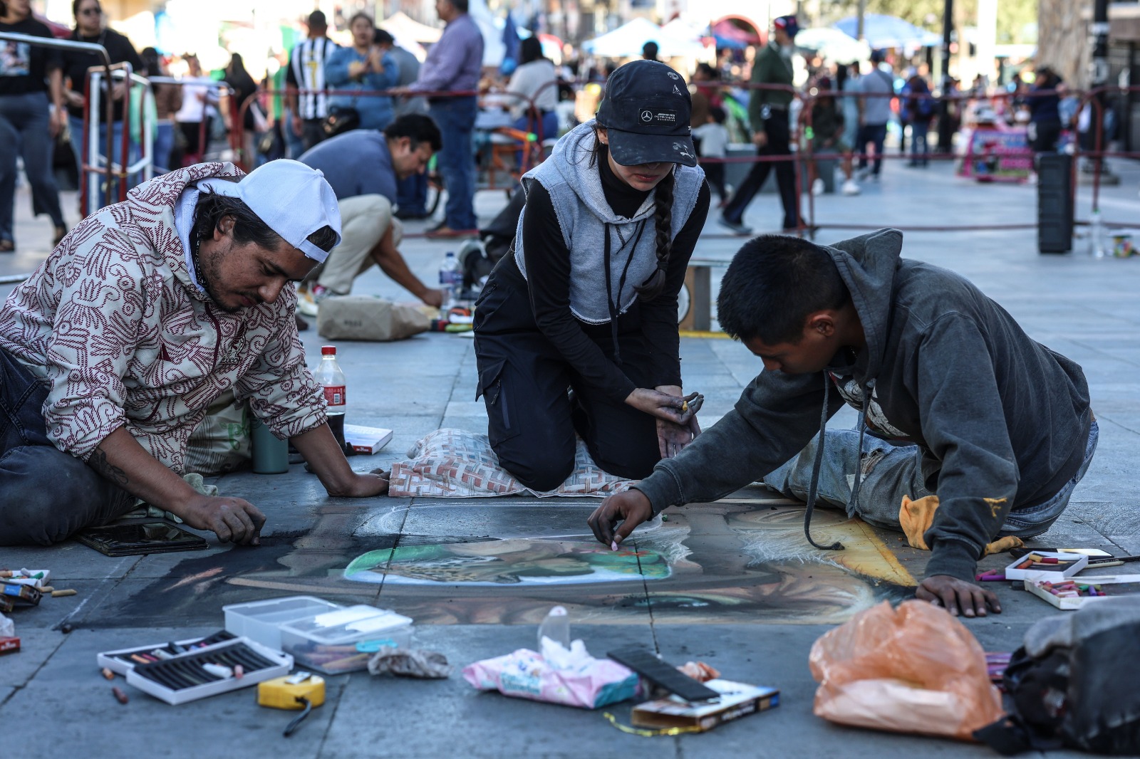 Desde temprana hora, los artistas se dieron cita para recibir su espacio y comenzar a trabajar con gis y pigmentos de colores, dando vida a dibujos tridimensionales que sorprendieron al público por su nivel técnico y creatividad.