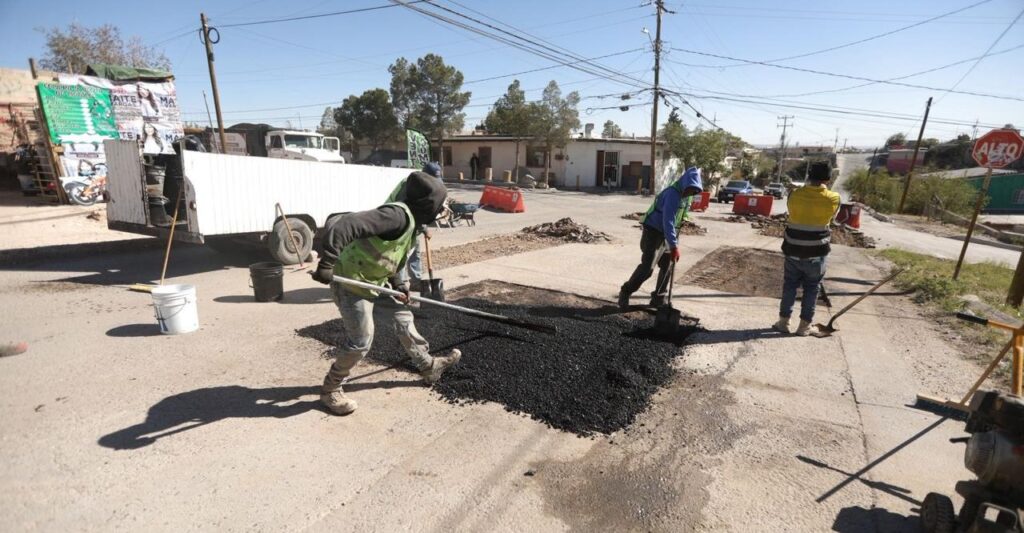 CD. JUAREZ, CHIH.- Con jornadas de día y de noche, la Dirección General de Obras Públicas ha trabajado en las brigadas especiales de bacheo, reportando hasta este lunes 8,569 baches tapados en diversos sectores de la ciudad, equivalente a 50,689.39 metros cuadrados de superficie reparada.