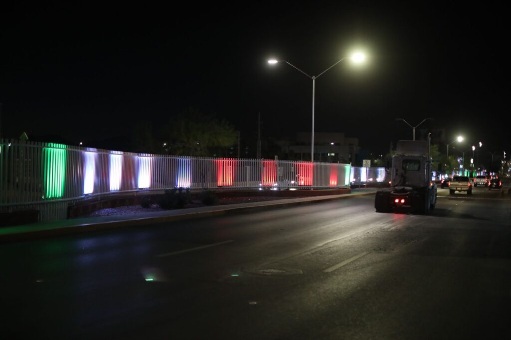 Indicó que las regletas manejan dos dinamismos de iluminación, destacando que los colores podrán ser cambiados de acuerdo a las efemérides que se presenten en la ciudad, iniciando el mes de septiembre con colores patrios.