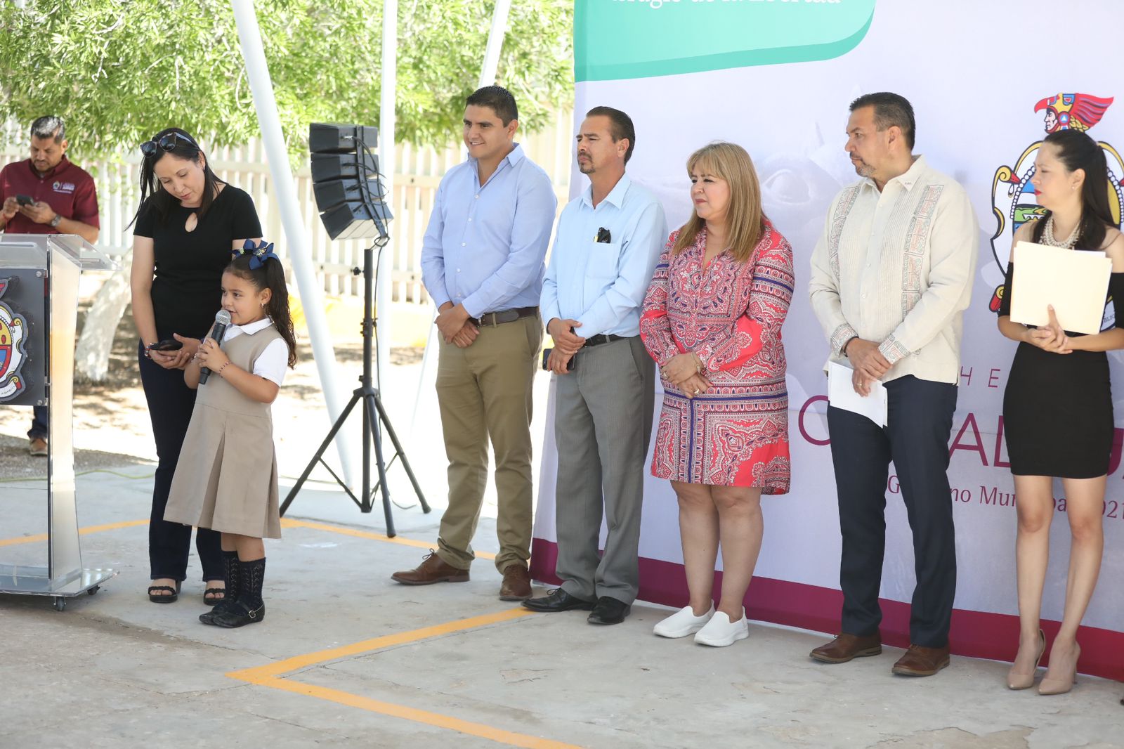En este evento el alcalde llevó a cabo la develación de una placa alusiva a la inauguración, la cual colocó junto al director general de Obras Públicas, Daniel González García; Ismael Rueda, coordinador de Infraestructura Educativa y Aracely González Holguín, directora de Educación, así como varios regidores y representantes del sector educación.