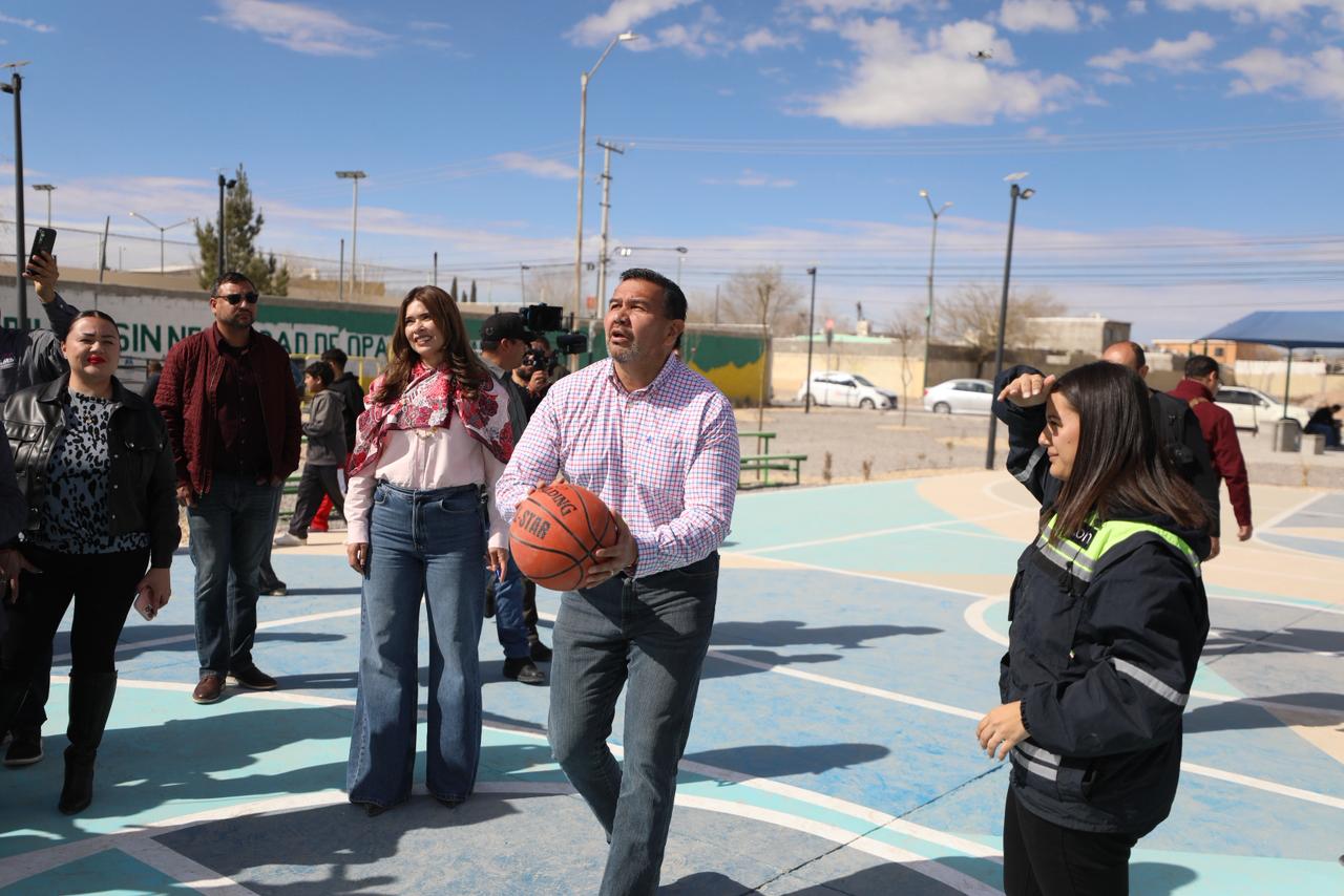CD. JUAREZ, CHIH.- El Presidente Municipal, Cruz Pérez Cuéllar y la presidenta del Sistema para el Desarrollo Integral de la Familia del Municipio (DIF), Rubí Enríquez, encabezaron la ceremonia de inauguración del tercer Centro Florece así como un parque en la colonia Parajes de San Juan.