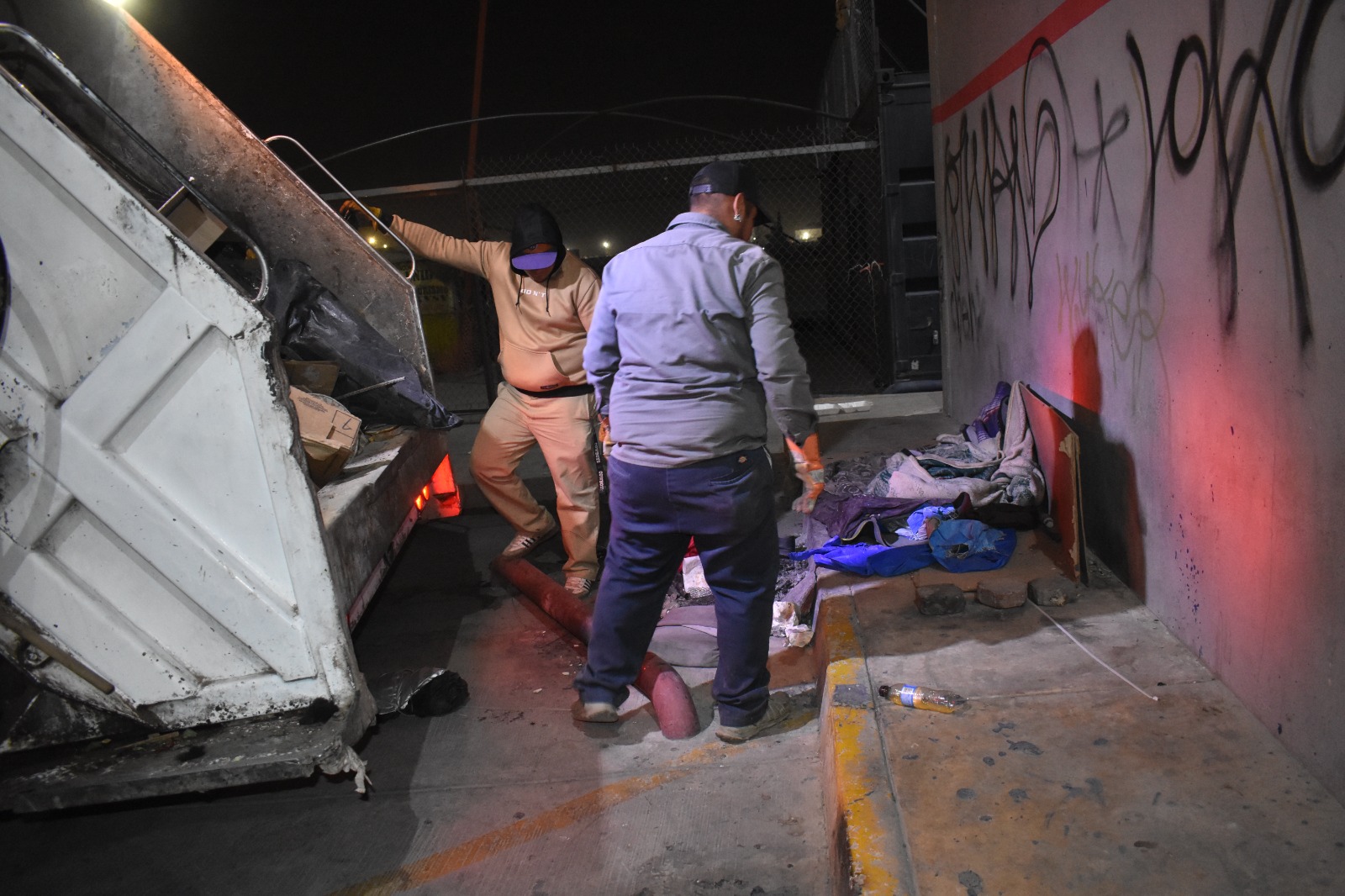 Por parte de la Dirección de Limpia, Juan Carlos Olivas, coordinador operativo de la dependencia, detalló que previo a la Cruzada Nocturna se trabajo en el barrido manual de 6 kilómetros, se retiraron 1,611 llantas, 1 tonelada de tiliches, 299 de tierra de arrastre y 28 de basura, además atendieron 1,400 metros cuadrados de superficie que contaba con grafiti.