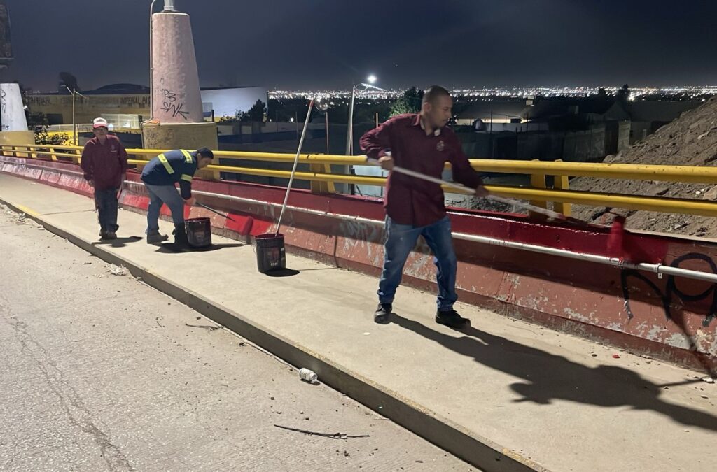 CD. JUAREZ, CHIH.- La Dirección General de Servicios Públicos Municipales, a través de la Dirección de Limpia, realiza labores de pintura en el puente ubicado en la intersección de las avenidas Manuel J. Clouthier y De Las Torres.