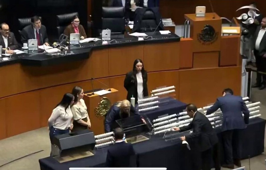 Tal como lo acordó la Mesa Directiva de esta Cámara, el procedimiento será continuo, público y transparente, por lo que se transmite por el Canal del Congreso y las plataformas digitales del Senado, además se cuenta con la presencia del notario público número 35 de la Ciudad de México, Eutiquio López Hernández.