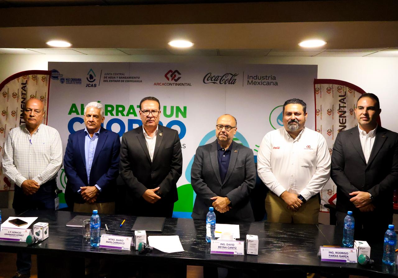 CHIHUAHUA, CHIH.- La Junta Central de Agua y Saneamiento (JCAS) y Arca Continental, parte de la Industria Mexicana de Coca-Cola, iniciaron con la entrega de las primeras regaderas ecológicas, como parte de un convenio de colaboración que incluye la donación de 30 mil unidades.