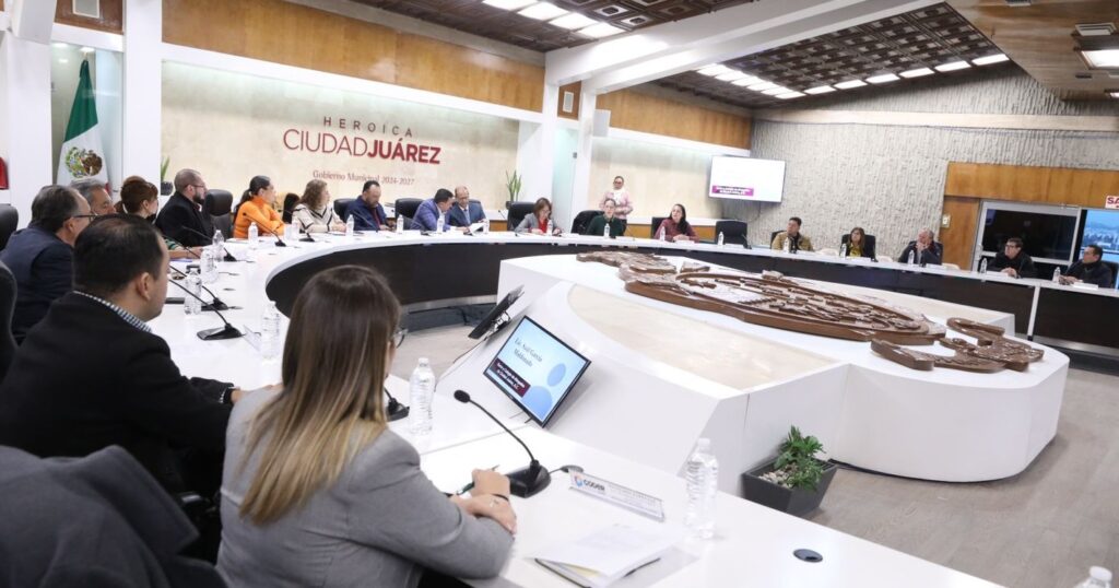 CD. JUAREZ, CHIH.- Durante la primera sesión ordinaria del 2025 del Consejo Municipal de Mejora Regulatoria, el Presidente Municipal, Cruz Pérez Cuéllar, invitó a los integrantes a continuar trabajando y avanzando en este proyecto, con el propósito de beneficiar a la ciudadanía en la agilización de trámites.