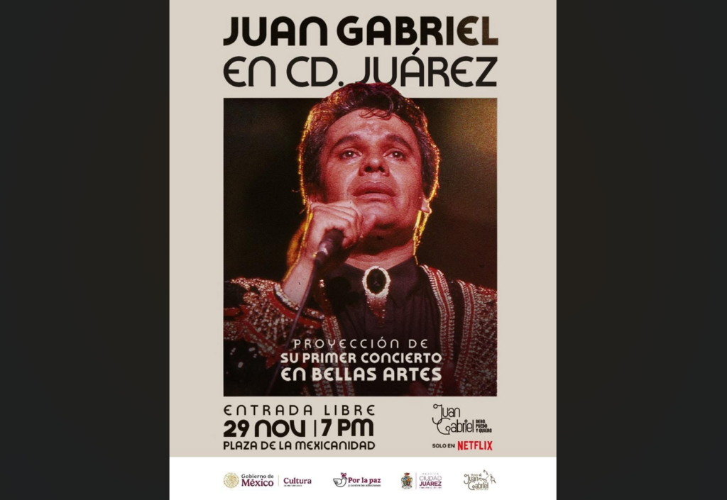 CD. JUAREZ, CHIH.-El próximo 29 de noviembre se proyectará en la Plaza de la Mexicanidad el primer concierto de Juan Gabriel en Bellas Artes, como parte de la estrategia nacional del Gobierno de la República por la Paz y Contra las Adicciones, impulsando los espacios de arte y la convivencia en la comunidad.