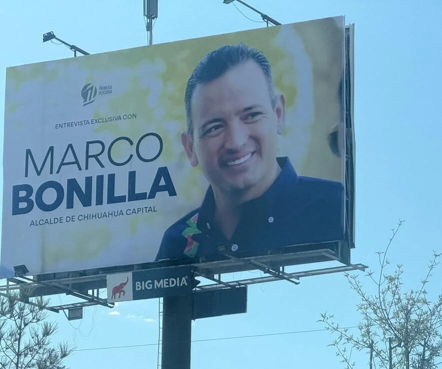 Porque no es solo la barda. En las avenidas principales de Juárez ya hay varias carteleras con una “entrevista” al alcalde de Chihuahua capital, Marco Bonilla. Entrevista que, curiosamente, tiene más poses y retoques que una sesión de influencer en Instagram. ¿Publicidad política disfrazada? Por favor… aquí hasta el ciego ve el disfraz mal puesto.