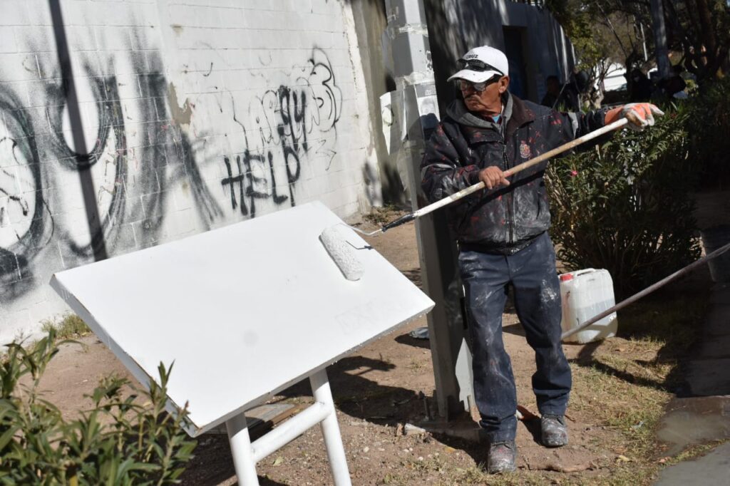 La Dirección de Limpia retira grafiti del Parque Borunda