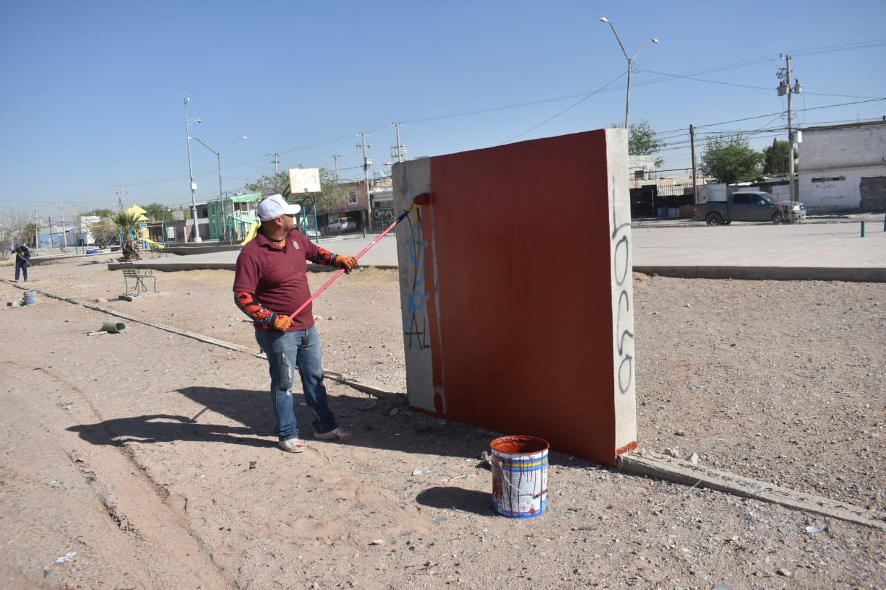 CD. JUAREZ, CHIH.- Personal de la Dirección de Parques y Jardines atendió esta semana el parque Lázaro Cárdenas, ubicado en el cruce de las calles Plan de Agua Prieta y Manuel Sánchez Marmolejo, dio a conocer Daniel Iván Zamarrón Saldaña, titular de la dependencia.
