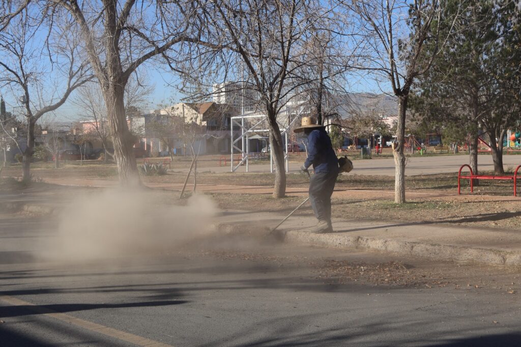 CD. JUAREZ, CHIH.- El personal de la Dirección de Parques y Jardines llevó a cabo trabajos de mantenimiento general en el parque ubicado en el fraccionamiento San Ángel, con el objetivo de conservar en buenas condiciones este espacio público y brindar áreas más seguras y agradables para las familias del sector.