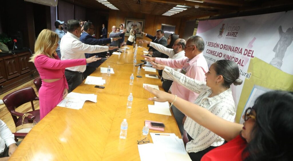 CD. JUAREZ, CHIH.- El Presidente Municipal, Cruz Pérez Cuéllar, encabezó la primera sesión ordinaria del Consejo Municipal de Nomenclatura y Patrimonio Cultural, en la cual se llevó a cabo la toma de protesta de los nuevos consejeros.