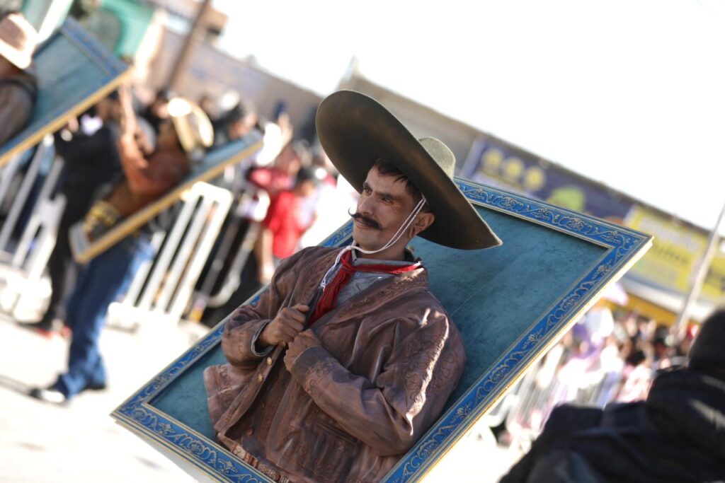 Los juarenses disfrutaron de un espectáculo de Adelitas y de un monumento a Pancho Villa, intervenido por el pintor juarense Arturo Damasco.