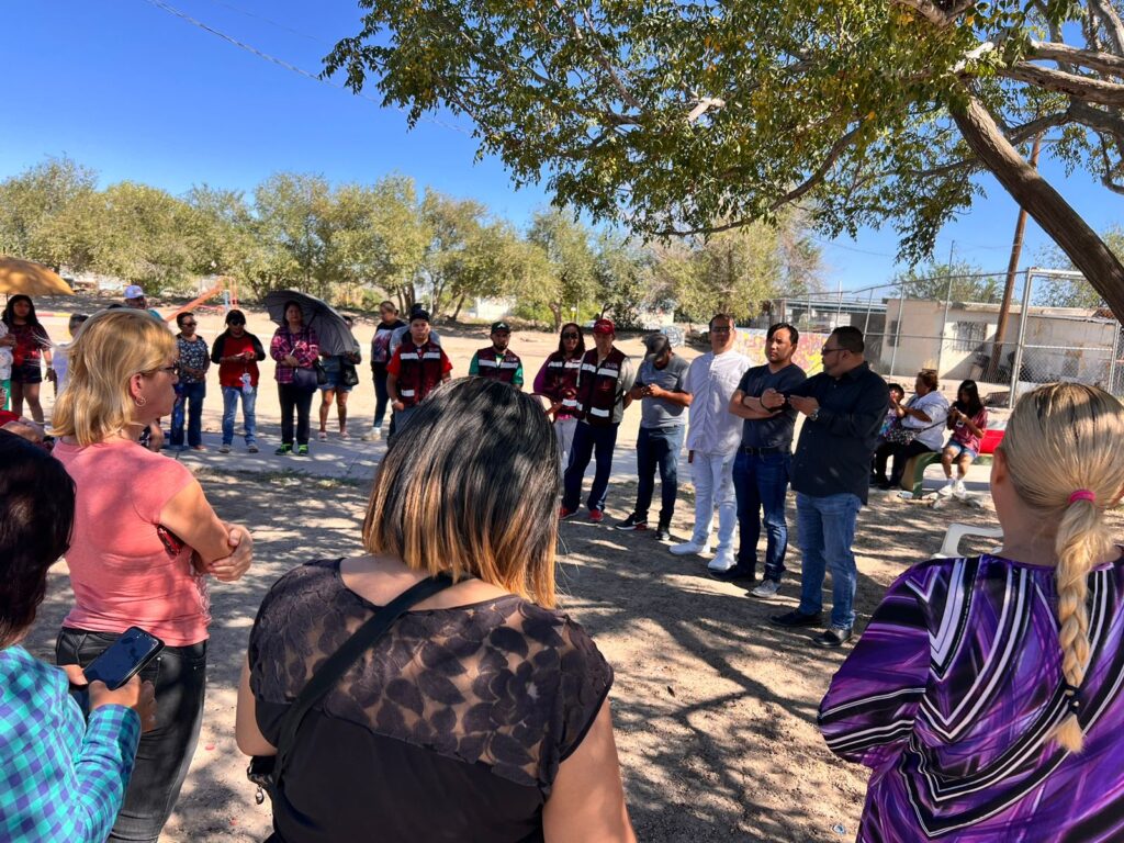 CD. JUAREZ, CHIH.- Como parte de la Estrategia Cruzada por Riberas, personal de distintas dependencias municipales acudió al fraccionamiento Riberas del Bravo, con el propósito de asesorar a los vecinos para que participen en el programa del Presupuesto Participativo 2025.