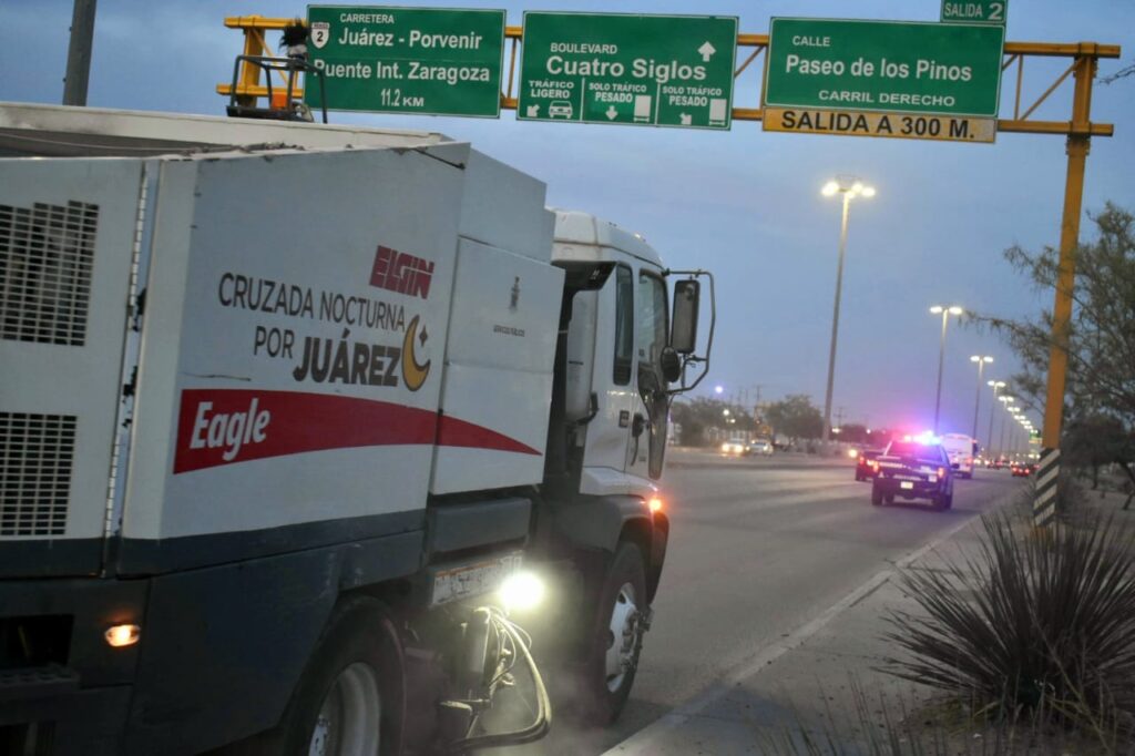 CD. JUAREZ, CHIH.- Como parte de la estrategia para mejorar la imagen urbana, la Dirección General de Servicios Públicos, llevó a cabo la edición número 46 de la Cruzada Nocturna en el bulevar Independencia, en donde se trabajo en la limpieza y la iluminación en un tramo de siete kilómetros.