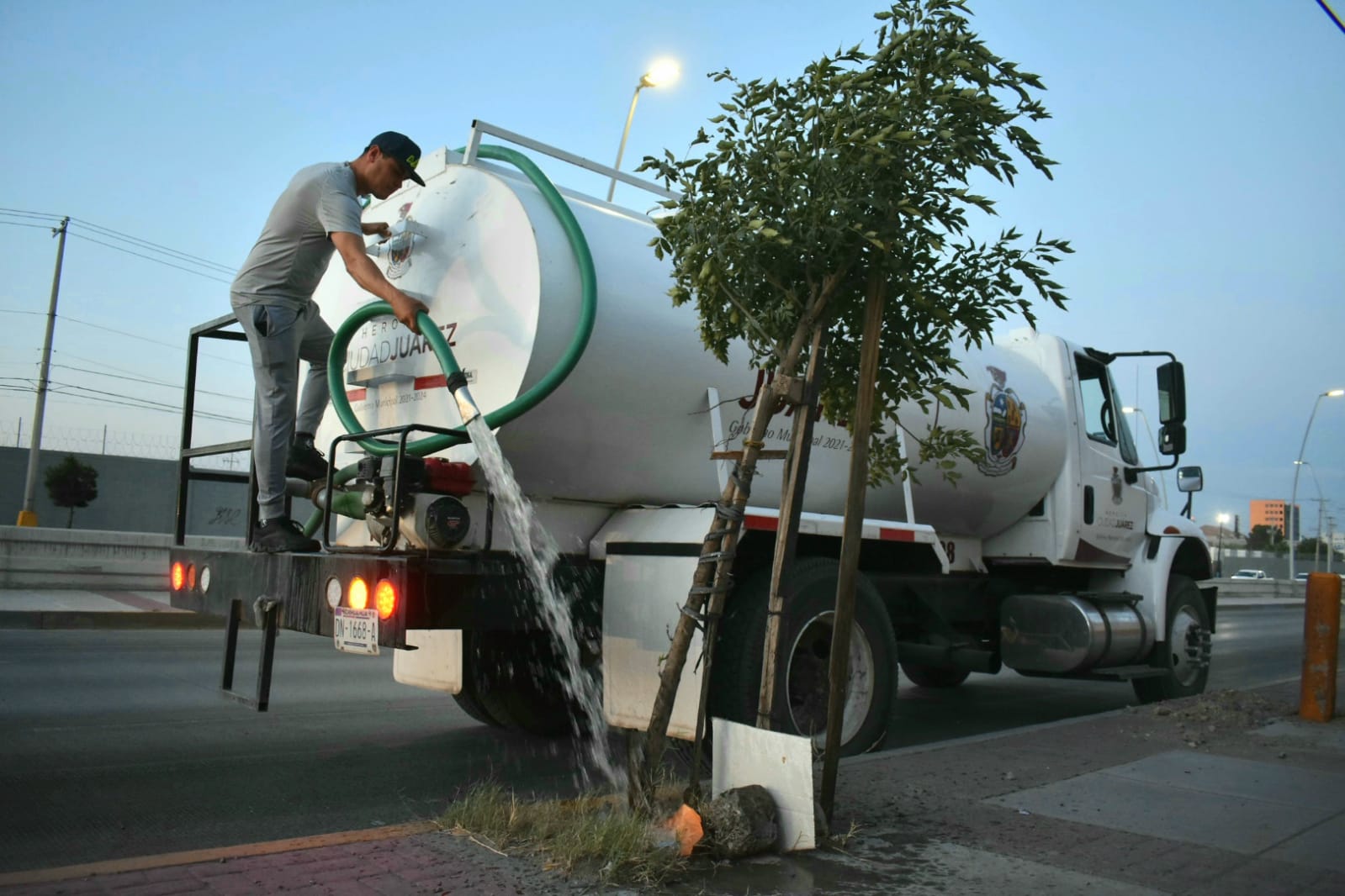 Mientras que personal de Parques y Jardines trabajó en el aseo de las banquetas y laterales desde el bulevar Óscar Flores hasta la avenida Francisco Villarreal Torres, además del riego de la vegetación de especies Fresnos y Chamizos que se encuentran en la zona, con el apoyo de las pipas con agua tratada.