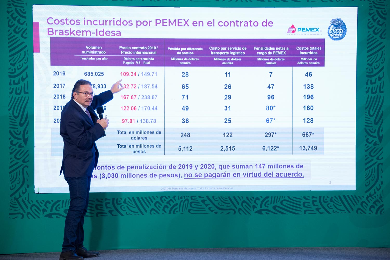 El director general de Pemex, Octavio Romero Oropeza, informó que desde diciembre de 2020 se establecieron mesas de trabajo para modificar el contrato de suministro de gas etano entre Pemex y Braskem-Idesa.