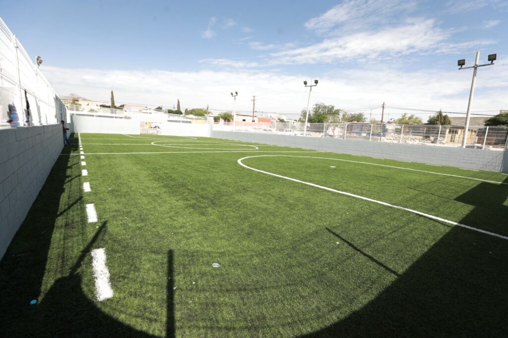 CD. JUAREZ, CHIH.- El objetivo de las obras que realiza el Gobierno Municipal es que la comunidad se beneficie, las disfrute y puede convivir sanamente, afirmó el Alcalde Cruz Pérez Cuéllar al entregar la restauración del pasto sintético de las canchas de futbol rápido de la colonia División del Norte.