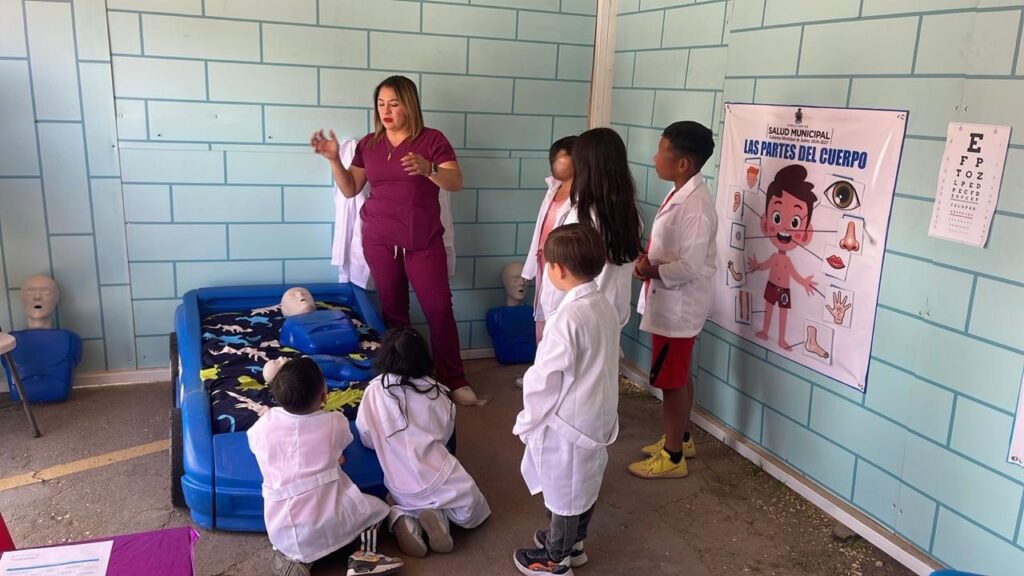 Daphne Santana Fernández, directora de Salud, explicó que este espacio está diseñado para que los menores aprendan de manera lúdica y práctica.