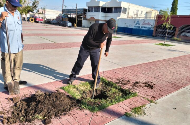 LUNES 18 AGOSTO 2025 POR REDACCION CD. JUAREZ, CHIH.- Cuadrillas de la Dirección de Parques y Jardines trabajan en preparar...