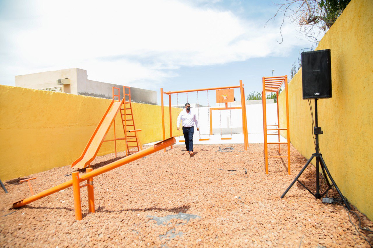 En los 120 metros cuadrados del terreno, se instalaron columpios, una resbaladilla, un pasamanos, así como una cancha con canasta para jugar basquetbol.