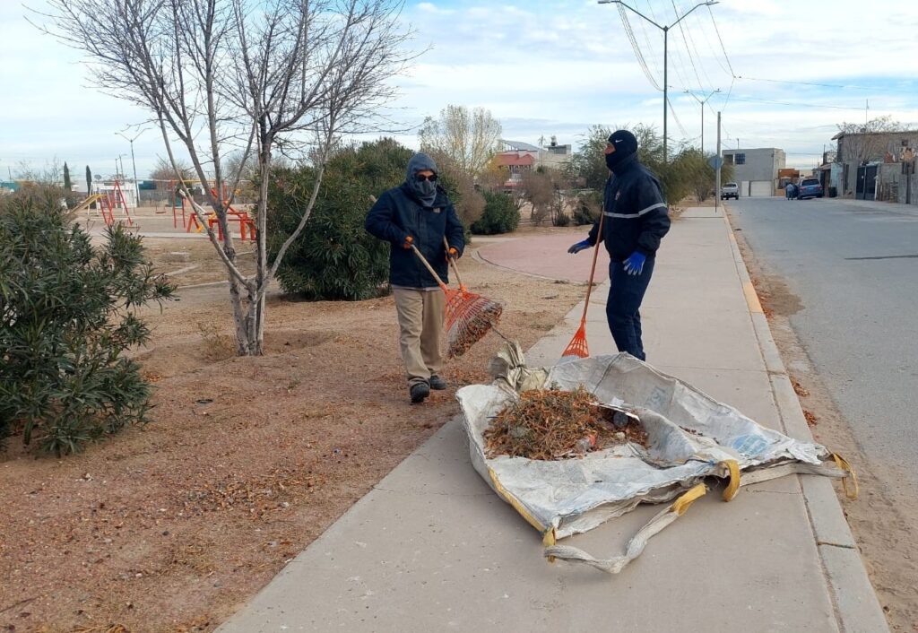 CD. JUAREZ, CHIH.- Como parte de las acciones de mantenimiento de los espacios públicos, la Dirección General de Servicios Públicos, a través de la Dirección de Parques y Jardines, llevó a cabo trabajos de limpieza general y poda formativa en distintos puntos de la ciudad.